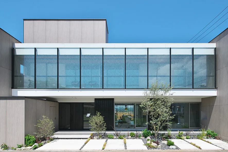 吹き抜けや空を見上げる、おおらかなモダンデザインの家。